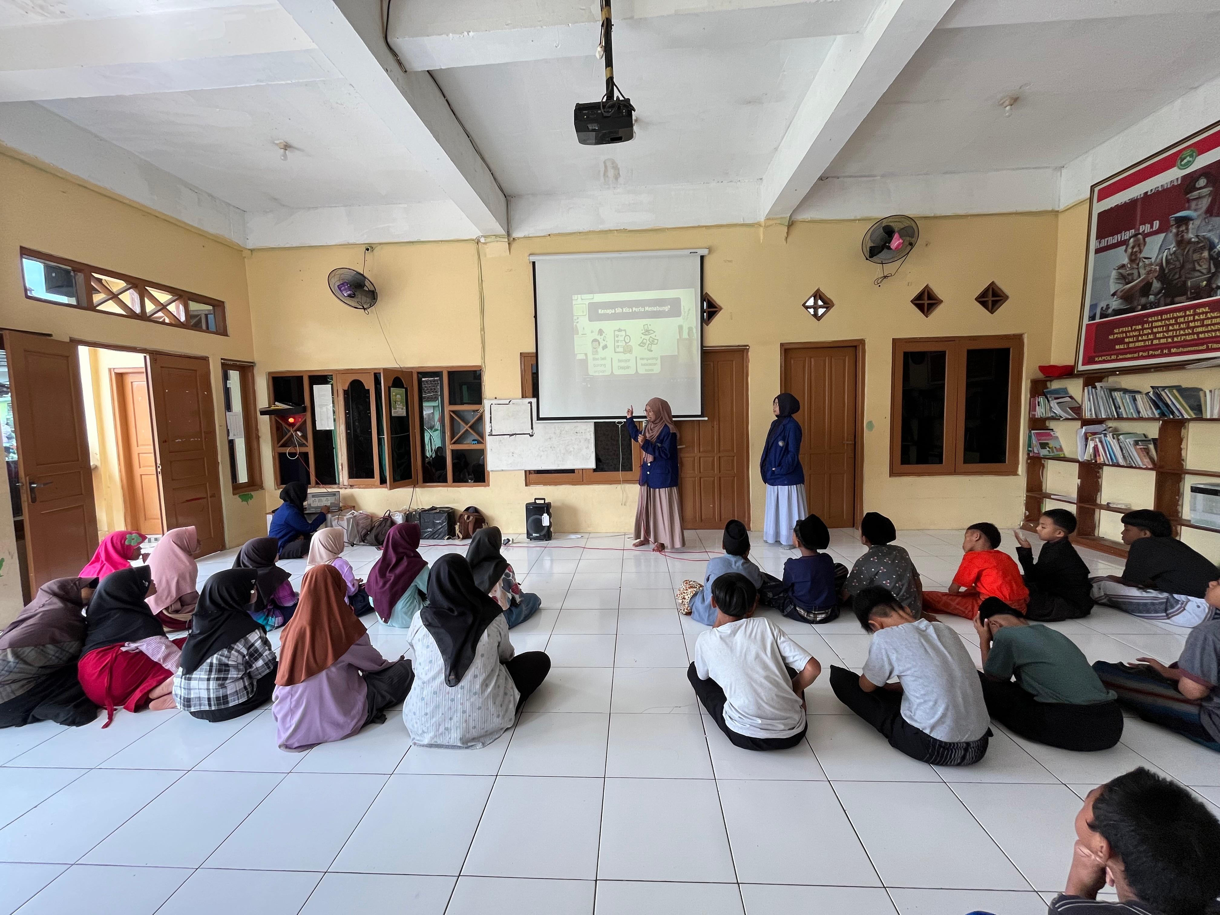 Pada sesi materi, mahasiswa memperkenalkan konsep Tabungan Mini mulai dari arti menabung, alasan pentingnya menabung, hingga cara menabung yang benar seperti menetapkan tujuan, menyisihkan uang jajan, dan memanfaatkan tabungan secara bijak. Metode penyampaian dibuat interaktif dengan contoh visual dan permainan singkat agar lebih mudah dipahami. “Kami berharap anak-anak tidak hanya mengerti ilmunya, tetapi benar-benar mempraktikkannya setiap hari, meskipun dari jumlah kecil,” ujar Hafna N.A.