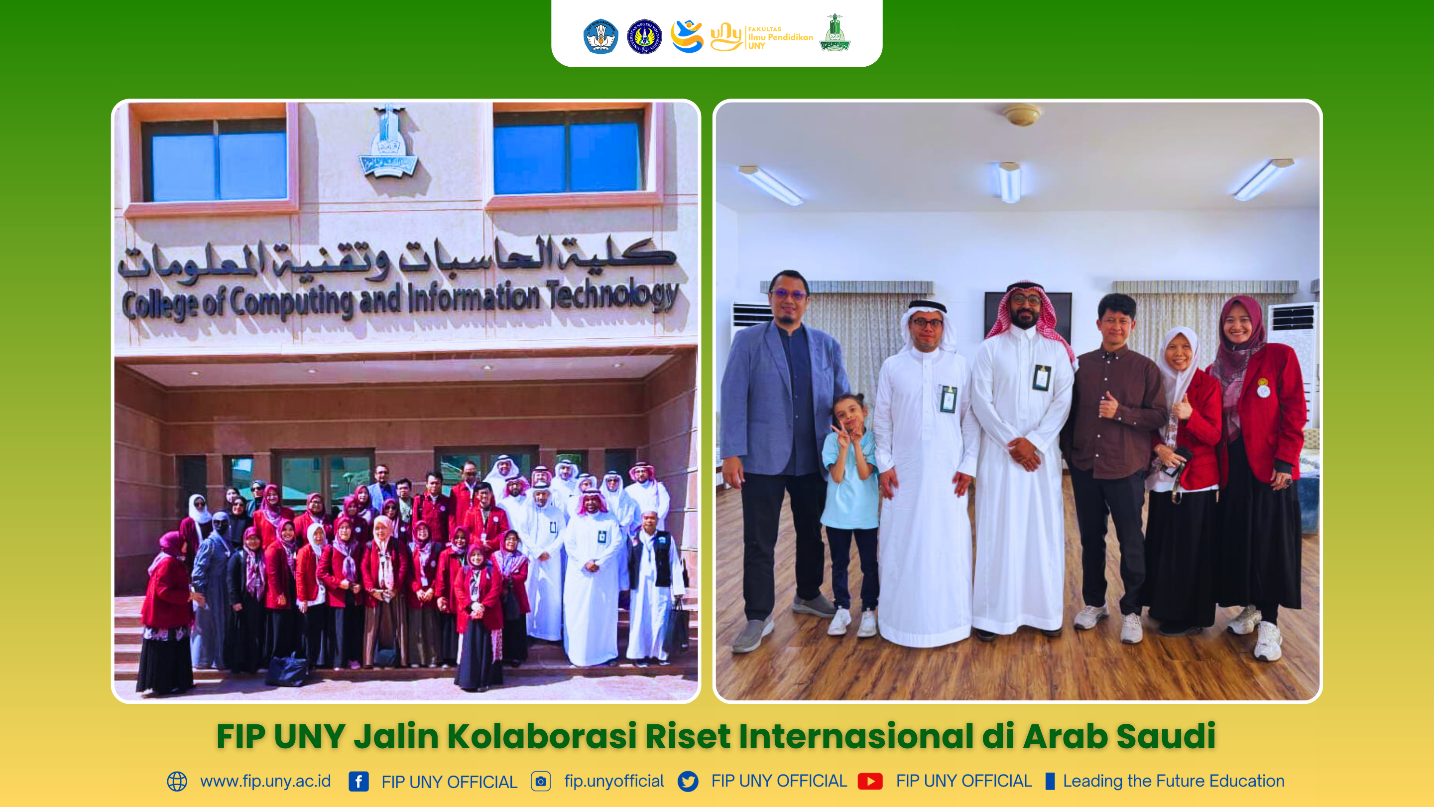 Fakultas Ilmu Pendidikan (FIP) Universitas Negeri Yogyakarta (UNY) terus memperluas jejaring akademik internasional melalui kegiatan kolaborasi penelitian dengan King Abdulaziz University, salah satu universitas ternama di Arab Saudi.