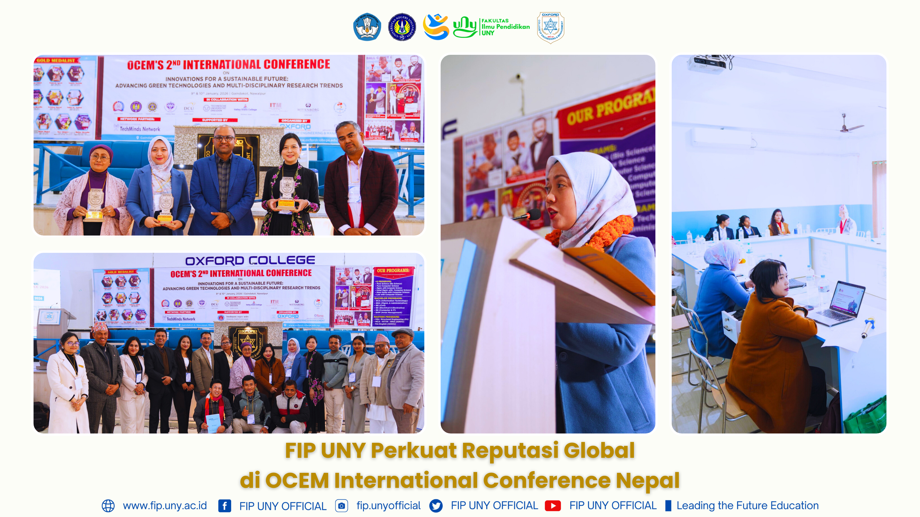 Kathmandu, Nepal 12-02-2026 – Fakultas Ilmu Pendidikan (FIP) Universitas Negeri Yogyakarta (UNY) kembali menegaskan kiprahnya di tingkat internasional melalui partisipasi dalam OCEM International Conference bertema “Inovasi untuk Masa Depan Berkelanjutan: Memajukan Teknologi Hijau dan Tren Riset Multidisipliner.” Kegiatan ini menjadi forum strategis pertukaran gagasan ilmiah lintas negara dan disiplin ilmu.