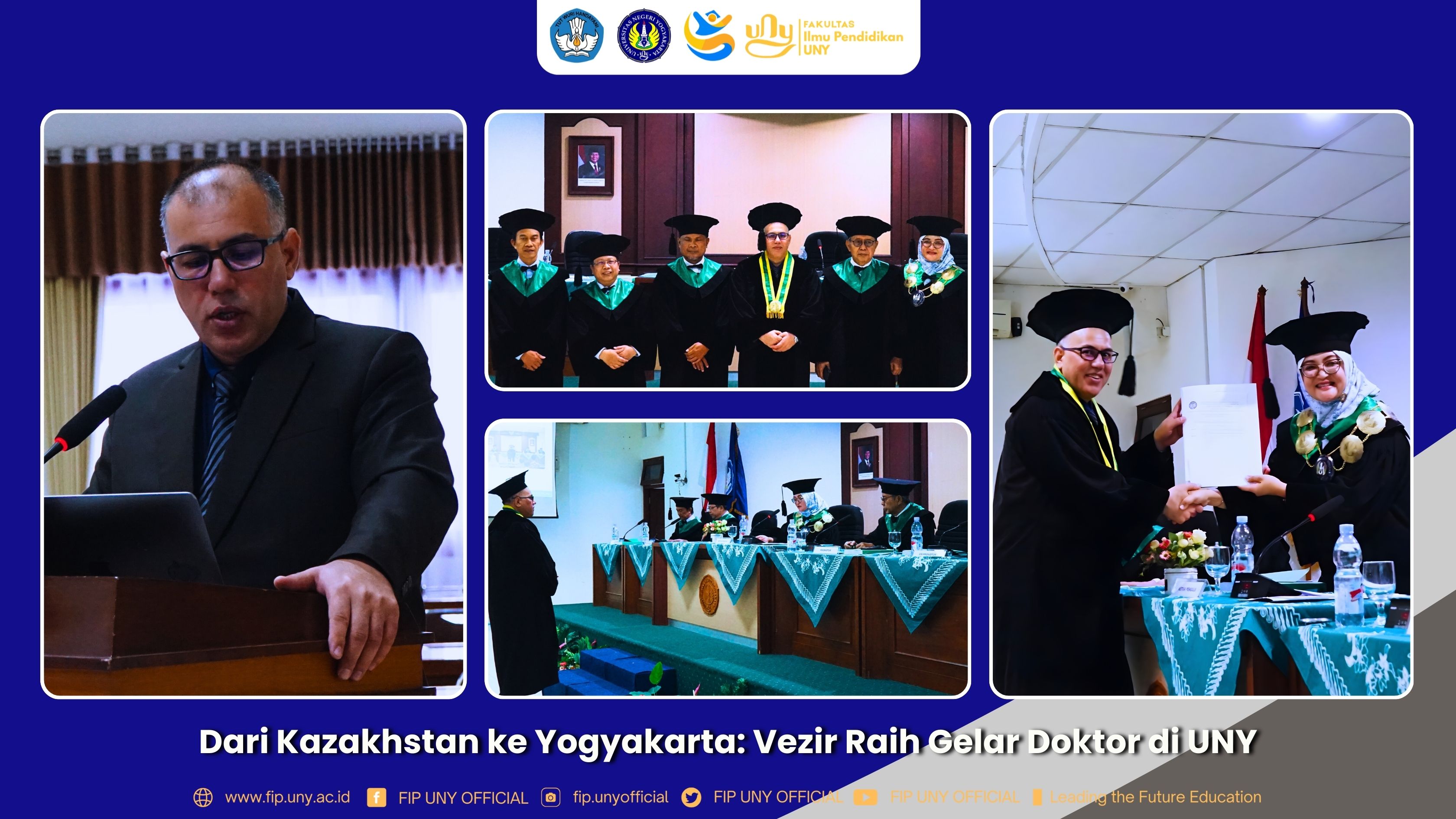 Yogyakarta 07-01-2026 – Vezir Ashyrnepesov, mahasiswa asal Kazakhstan pada Program Studi Manajemen Pendidikan, Fakultas Ilmu Pendidikan (FIP), Universitas Negeri Yogyakarta (UNY), resmi meraih gelar doktor setelah dinyatakan lulus dalam ujian terbuka disertasi.